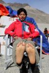 ●栗城氏はご自分の足を極所で起きるスキントラブルから守るために、プロテクトJ1を使われていることはお伝えしましたが、今回は現地からの足の写真が届きました。先ずは足裏をご覧下さい。